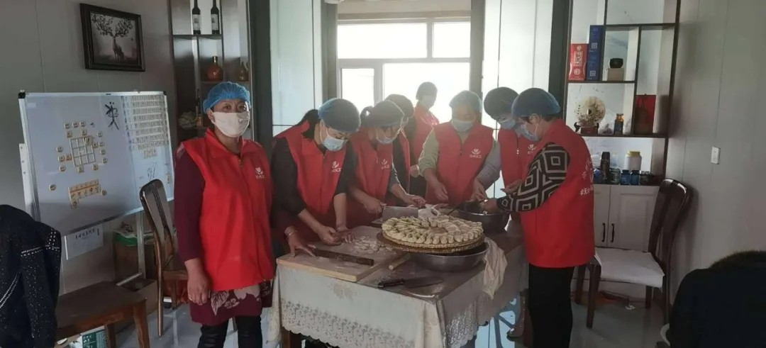 爱心饺子进行时、义工家人们有序分工,摘菜、洗菜,调馅、和面,大家围在桌子边一起包饺子,其乐融融。